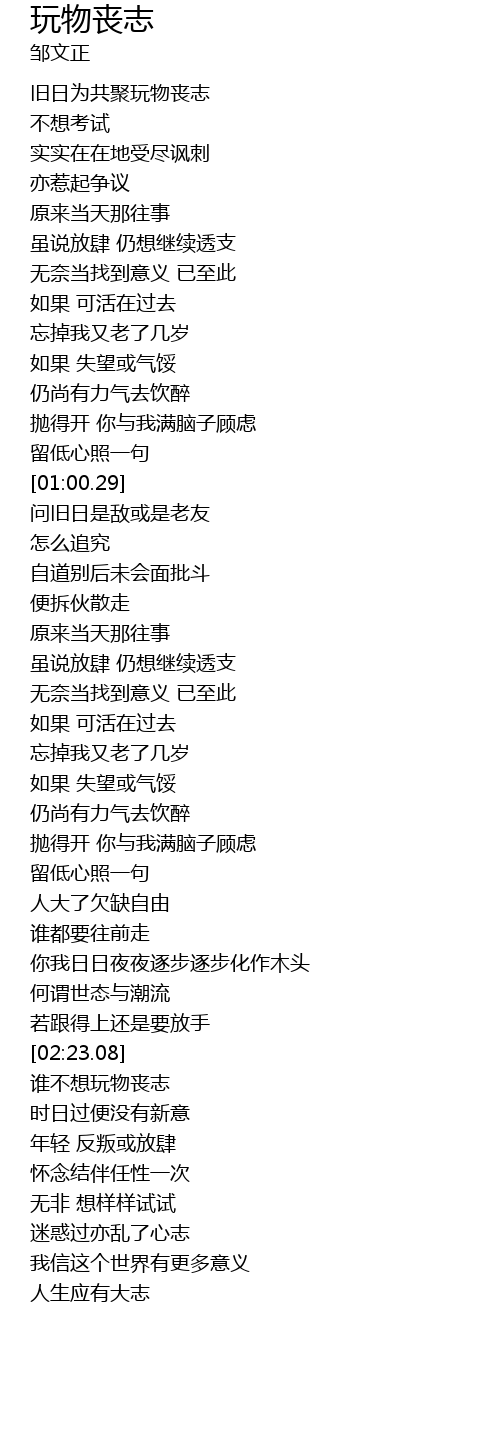| [01:59.68] | 人大了欠缺自由 |