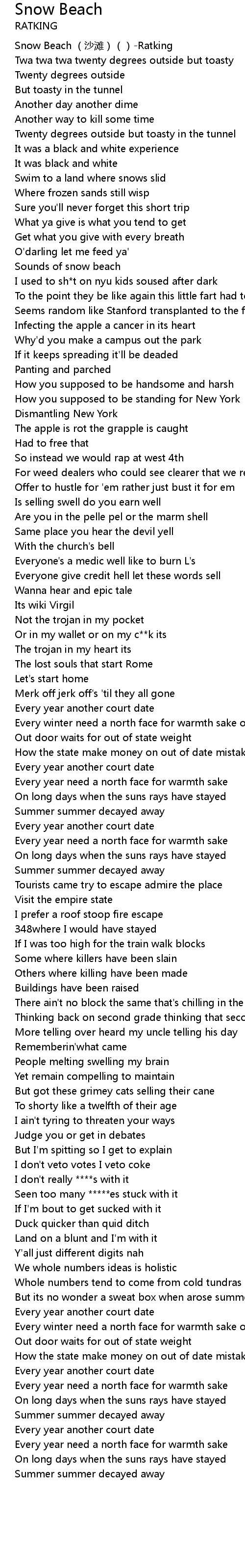 | [00:00.00] | Snow Beach sha tan Ratking |