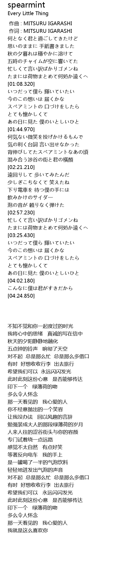| [02:06.370] | 背伸びしてたスベアミントなあの頃 |