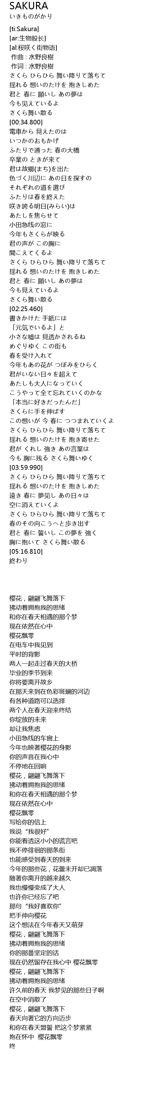 | [05:02.420] | 胸に抱いて さくら舞い散る |