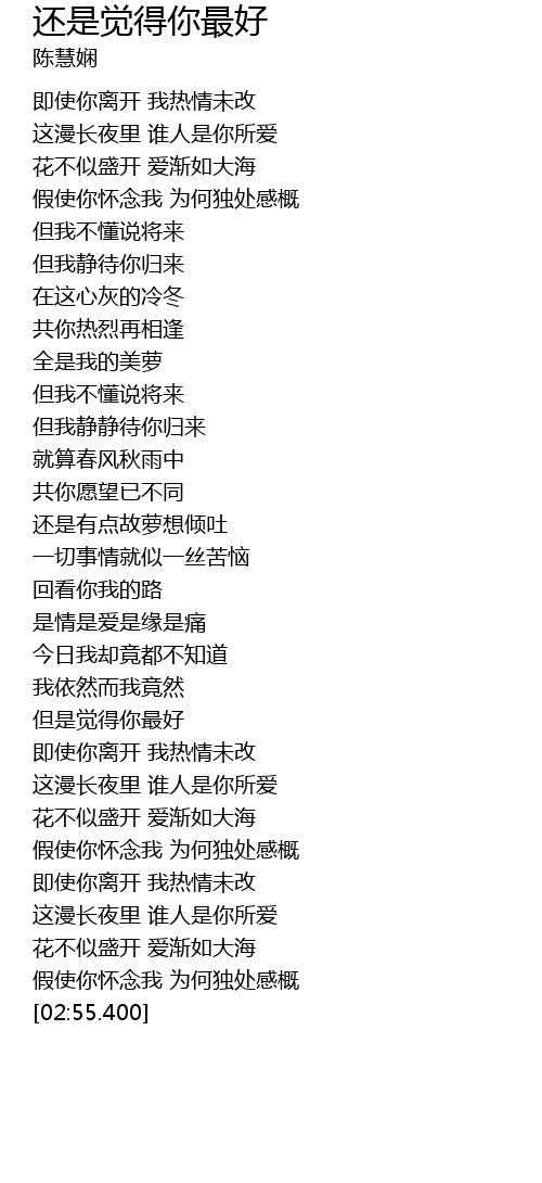 | [01:48.400] | dàn shì jué de nǐ zuì hǎo |