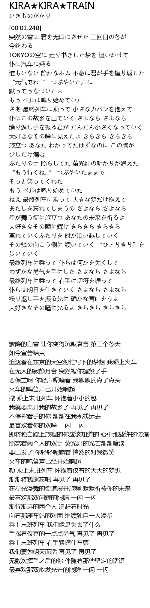 | [00:43.220] | TOKYOの空に 走り书きした梦を 追いかけて 仆は汽车に乘る |
