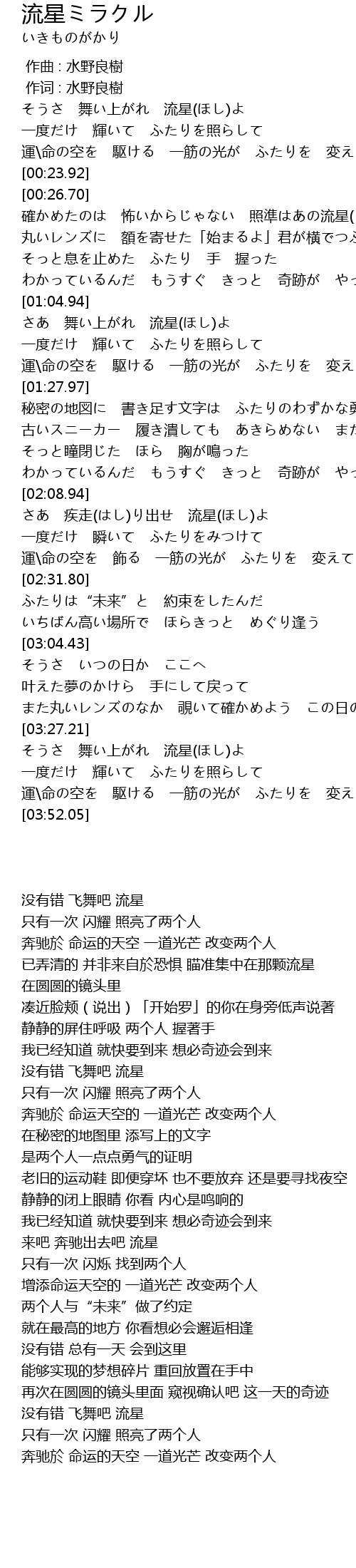 | [01:05.16] | さあ 舞い上がれ 流星(ほし)よ |