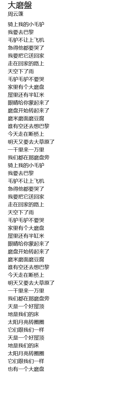 | [01:38.760] | 磨米磨面磨豆腐 |