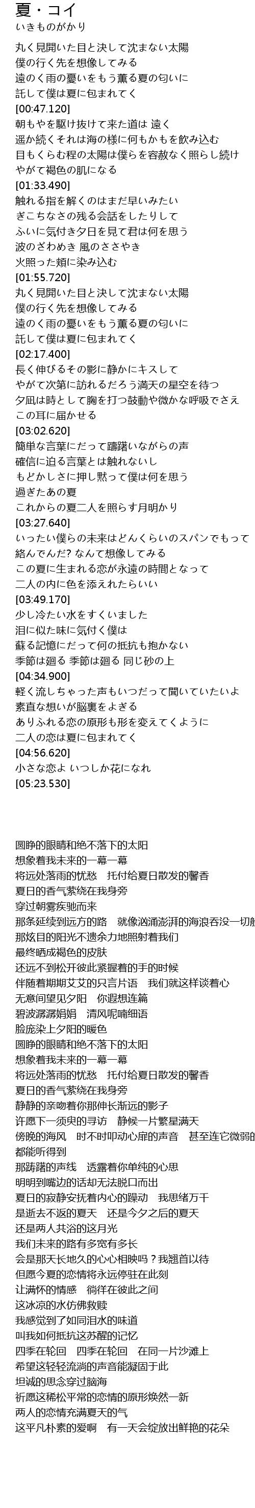 | [04:51.880] | 二人の恋は夏に包まれてく |