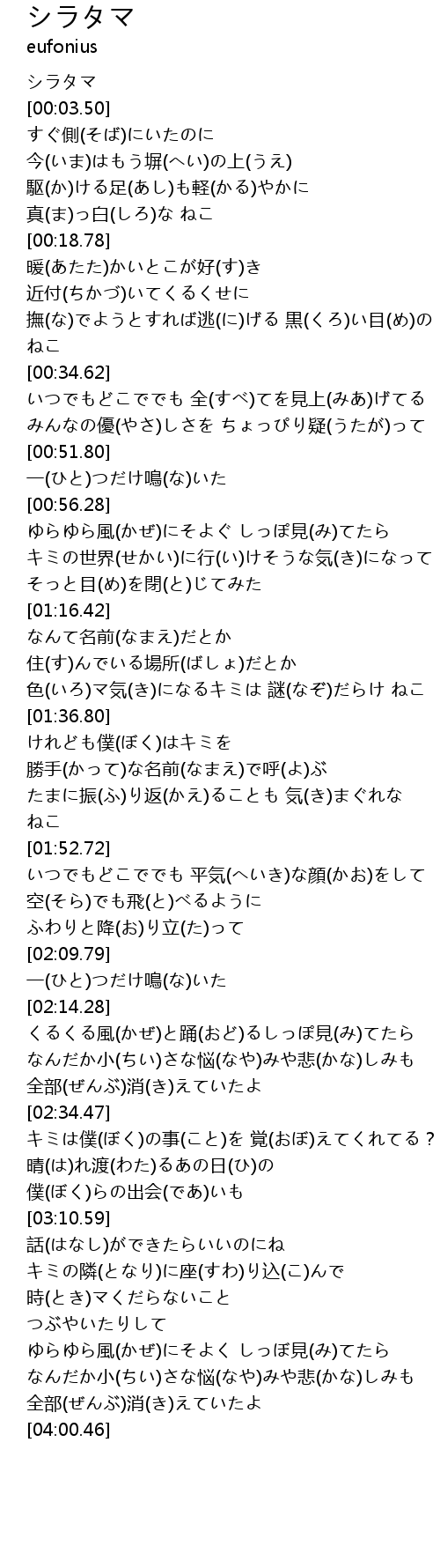 | [03:40.80] | ゆらゆら風(かぜ)にそよく しっぼ見(み)てたら |