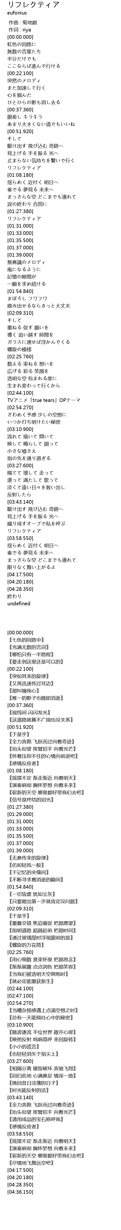 | [01:29.000] | リフレクティア |