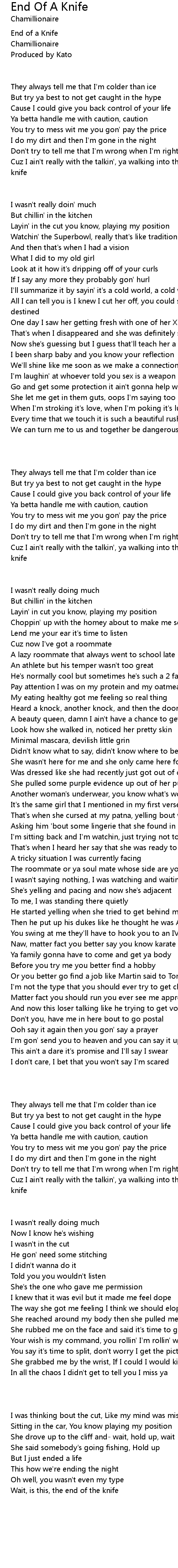 Cuz I ain't really with the talkin', ya walking into the end of a knife