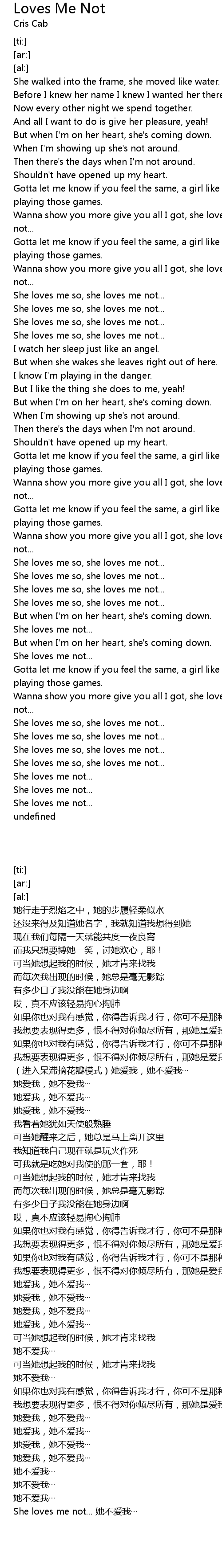 Wanna show you more give you all I got, she loves me so, she loves me not... |