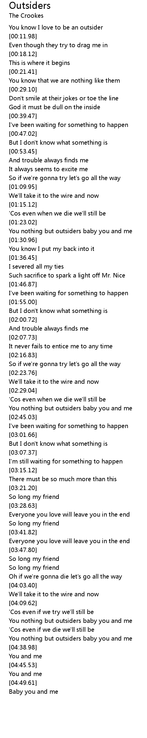 You nothing but outsiders baby you and me |