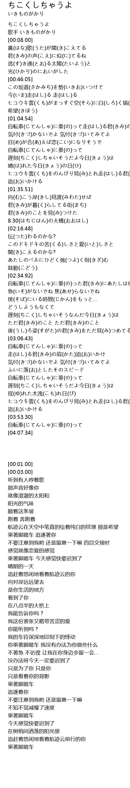 | [04:03.47] | 自転車(じてんしゃ)に乗(の)って |