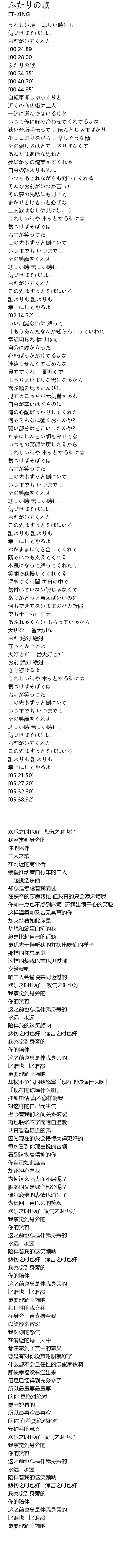 | [00:31.20] | ふたりの歌 |