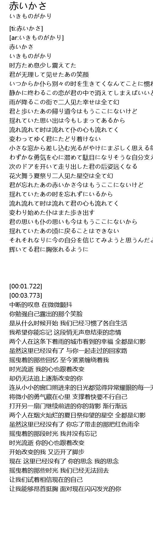 | [03:03.950] | 君が忘れたあの赤いかさ今はもうここにないけど |