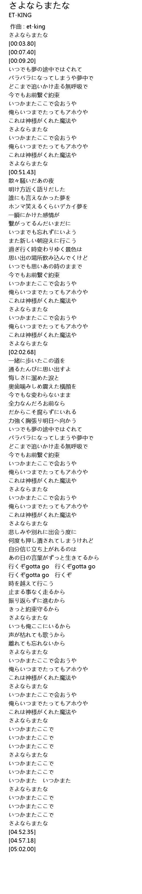 | [00:43.57] | 俺らいつまでたってもアホウや |
