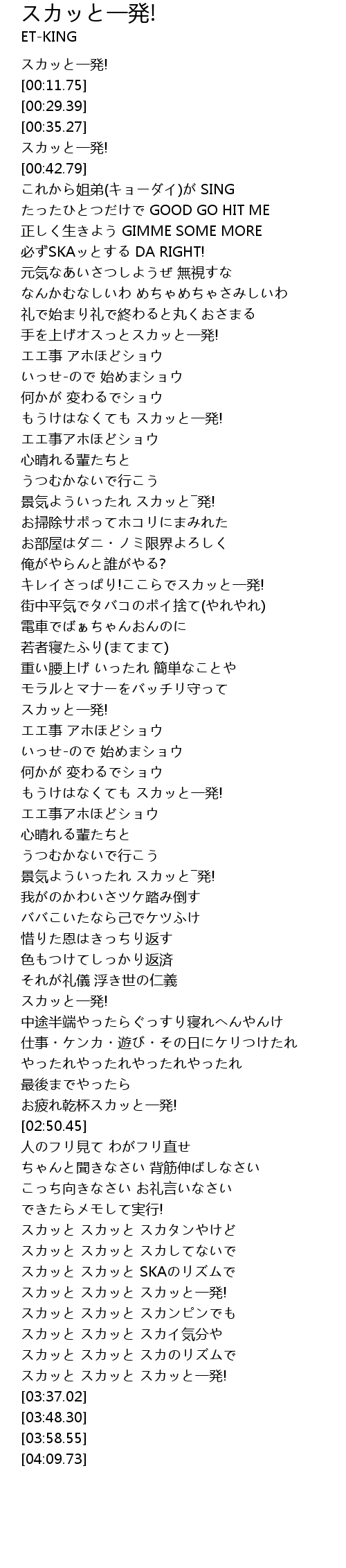 | [03:22.36] | スカッと スカッと スカッと一発! |