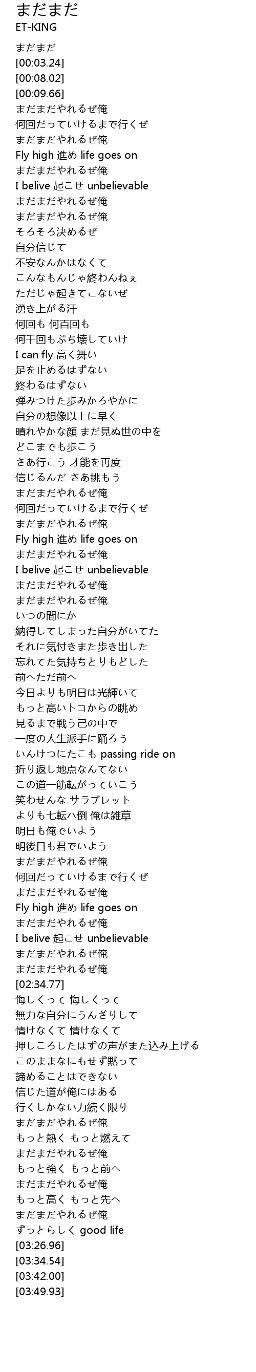 | [03:22.17] | まだまだやれるぜ俺 |