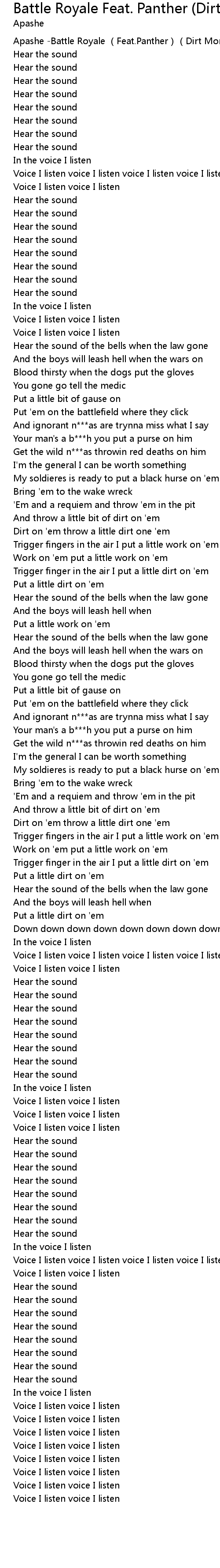 | [00:00.64] | Apashe Battle Royale Feat. Panther Dirt Monkey Remix |