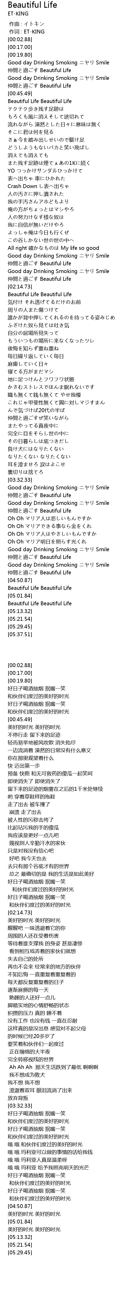 | [04:29.38] | Good day Drinking Smoking Smile |