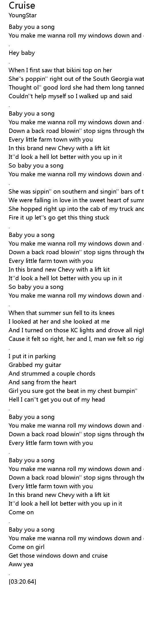 You make me wanna roll my windows down and cruise |