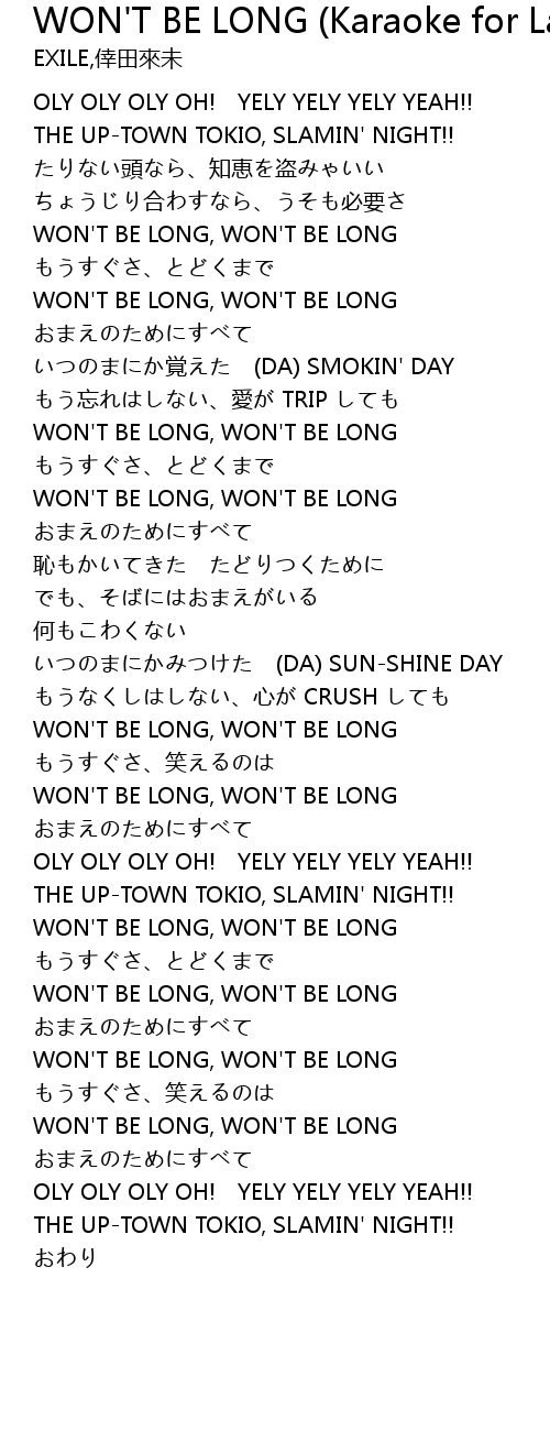 | [03:54.30] | WON'T BE LONG, WON'T BE LONG |
