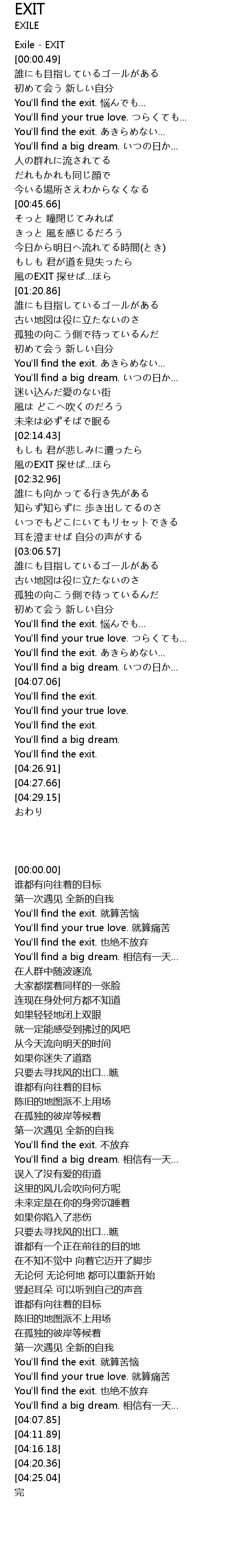 | [00:00.00] | Exile EXIT |