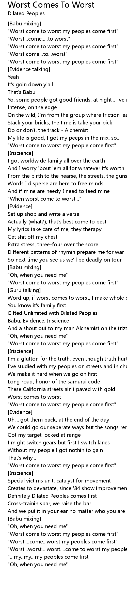 "Worst...worst....worst....come to worst my peoples come first" |
