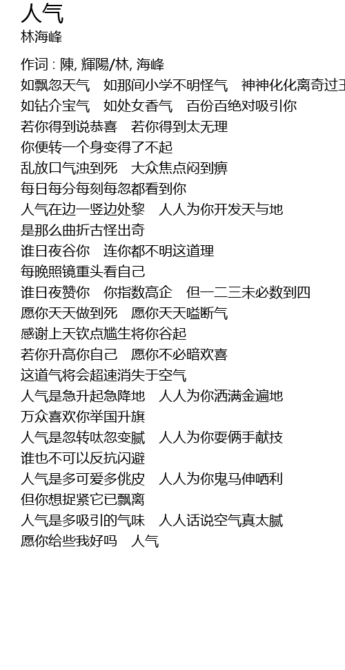 | 人气是急升起急降地 人人为你洒满金遍地 | |