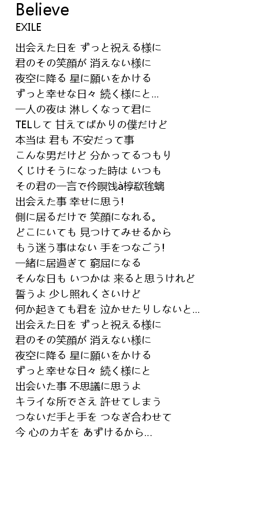 | [01:43.090] | 出会えた事 幸せに思う! |