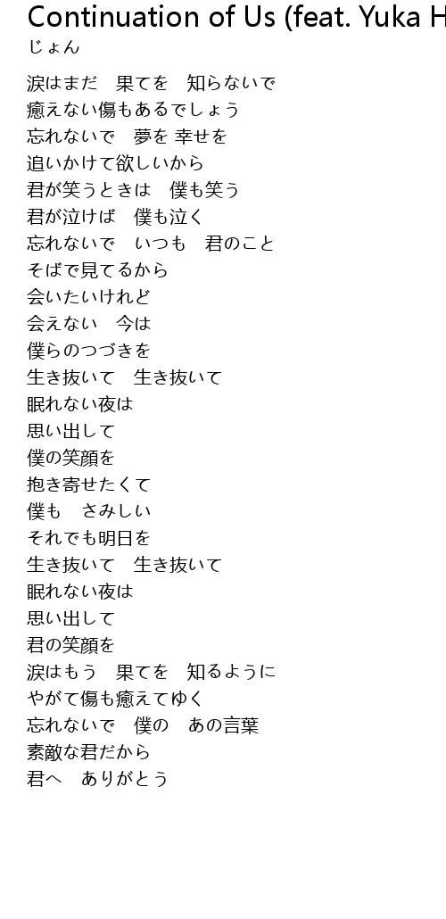 | Song | Continuation of Us (feat. Yuka Hiiragi) |