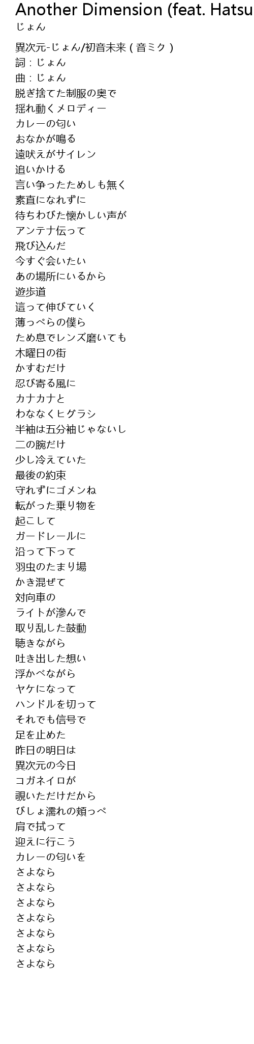 | [00:00.00] | 異次元-じょん/初音未来(音ミク) |