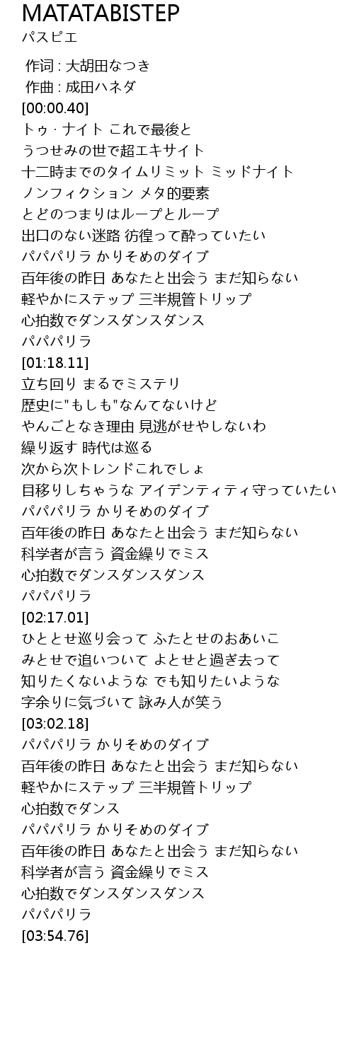 | [03:03.13] | パパパリラ かりそめのダイブ |