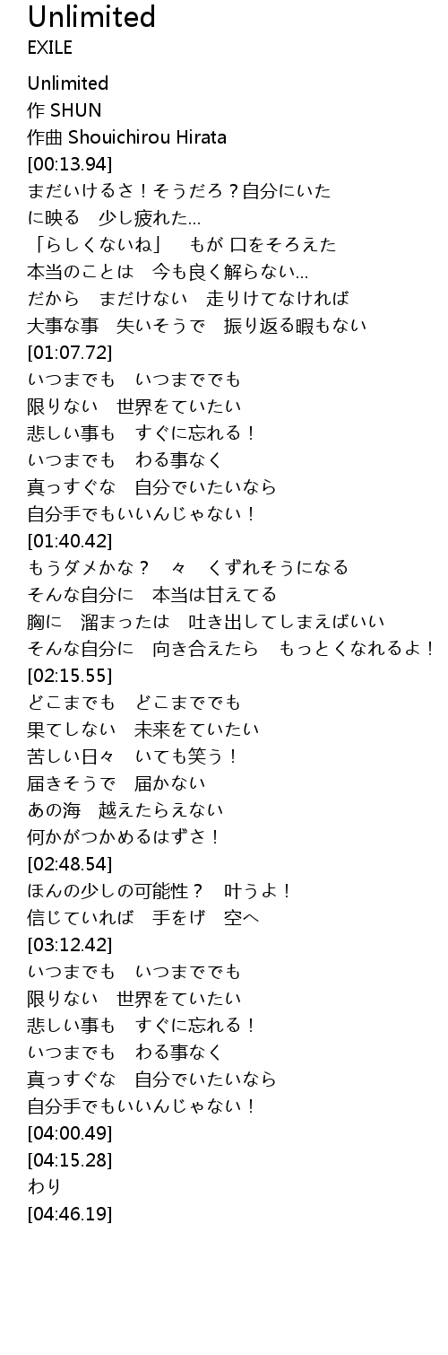 | [00:01.17] | Unlimited |