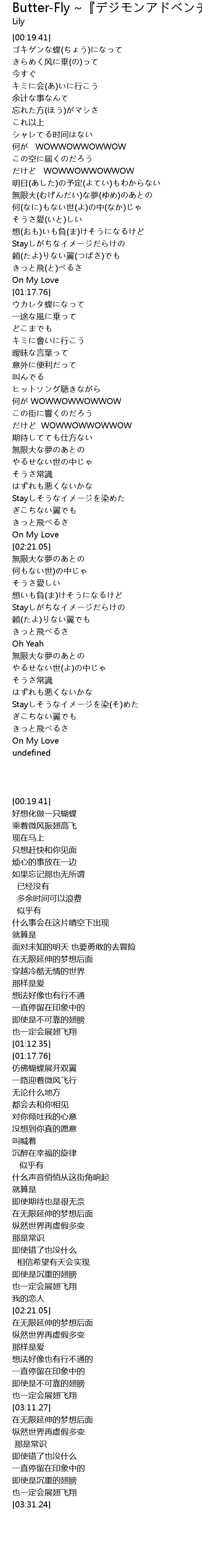 | [01:24.46] | ウカレタ蝶になって |