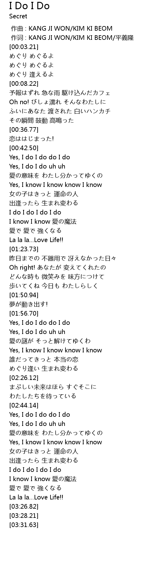 | [00:01.00] | 作词 : KANG JI WON/KIM KI BEOM/平義隆 |