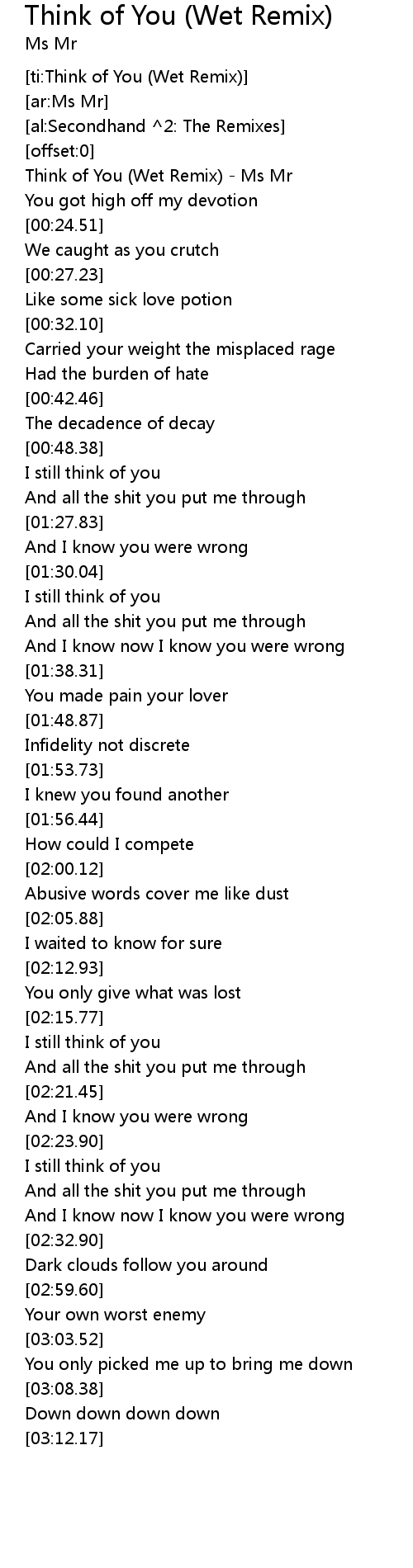 [00:01.23] Think of You (Wet Remix) - Ms Mr