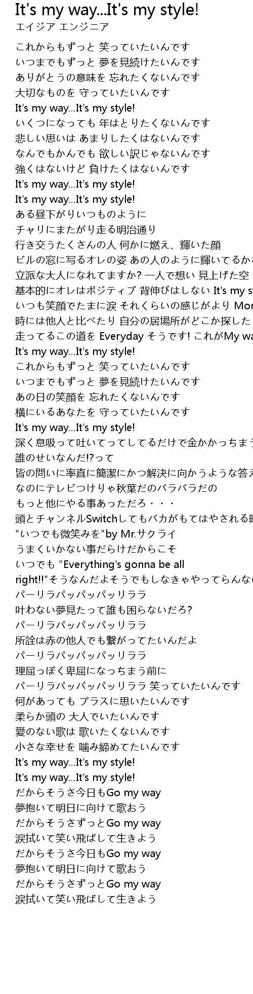 | 走ってるこの道を Everyday そうです! これがMy way | |