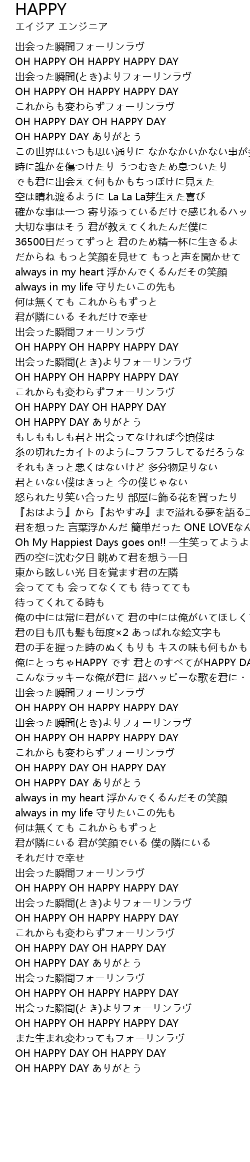 | 俺にとっちゃHAPPY です 君とのすべてがHAPPY DAYS | |