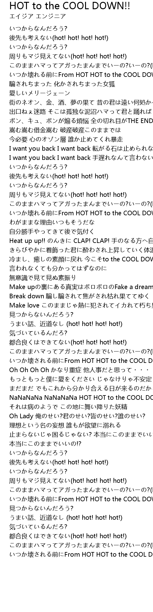 | いつか壊れる前にFrom HOT HOT to the COOL DOWN!! | |