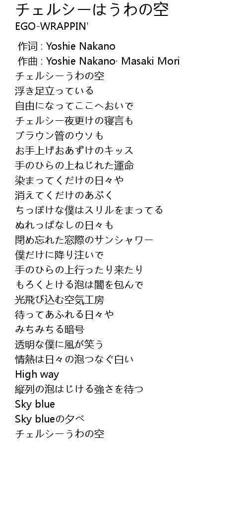 | [00:00.000] | 作词 : Yoshie Nakano |