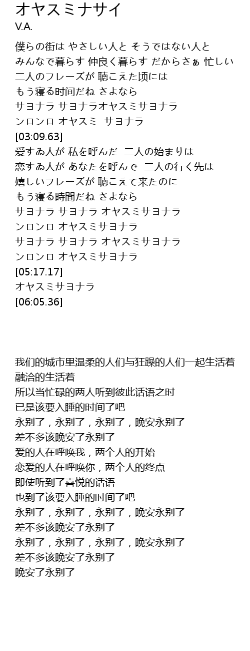 | [05:06.57] | ンロンロ オヤスミサヨナラ |