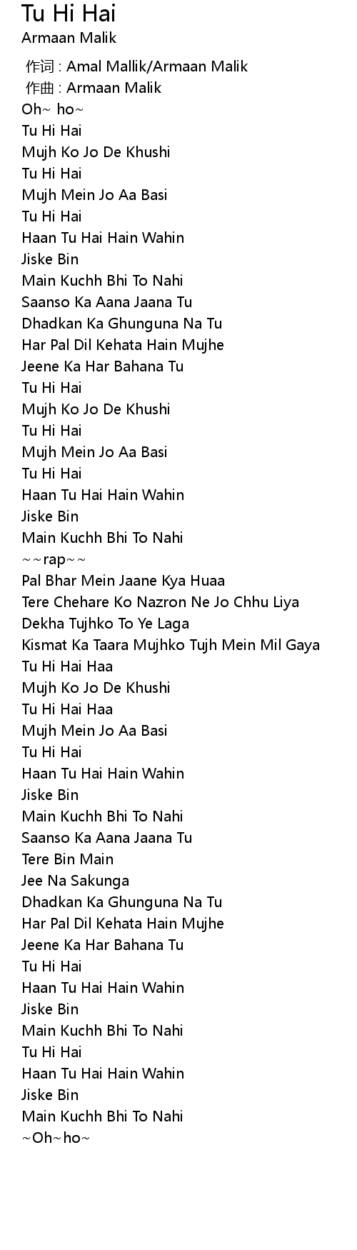 | [00:00.000] | 作词 : Amal Mallik/Armaan Malik |