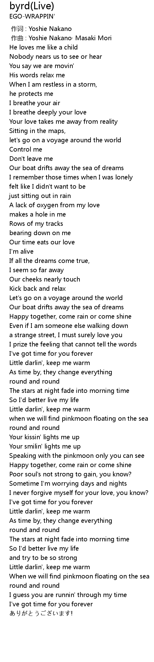 | [00:00.000] | 作词 : Yoshie Nakano |