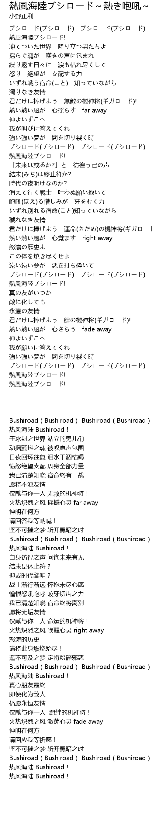 | [01:34.75] | ブシロード(ブシロード) ブシロード(ブシロード) |