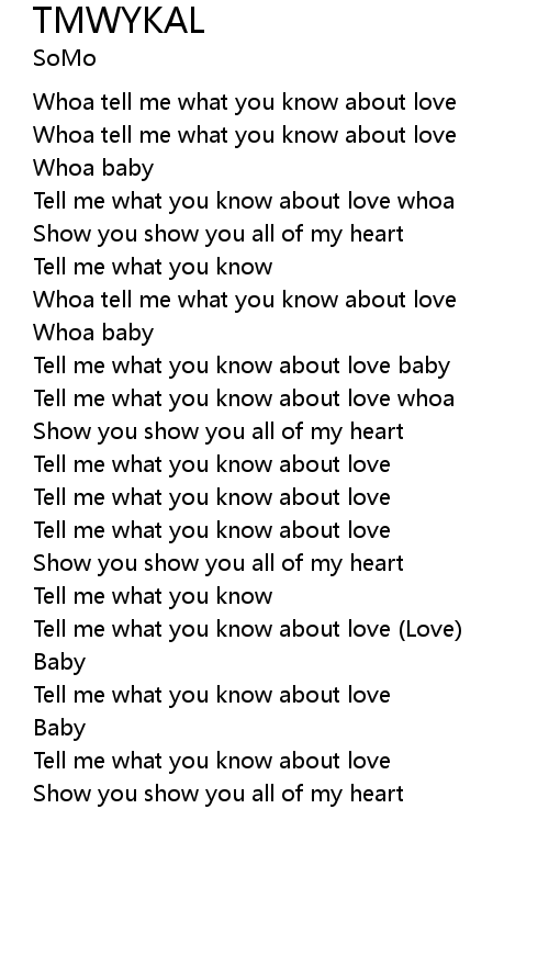 | [00:16.41] | Whoa tell me what you know about love |