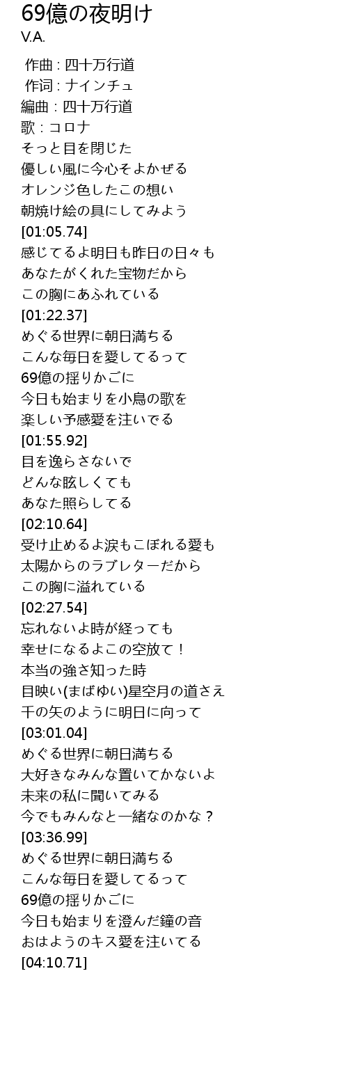 | [01:34.95] | 69億の揺りかごに |