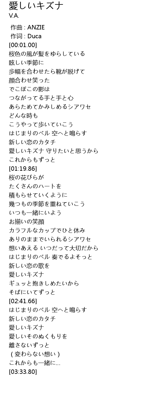 | [01:10.12] | 愛しいキズナ 守りたいと思うから |