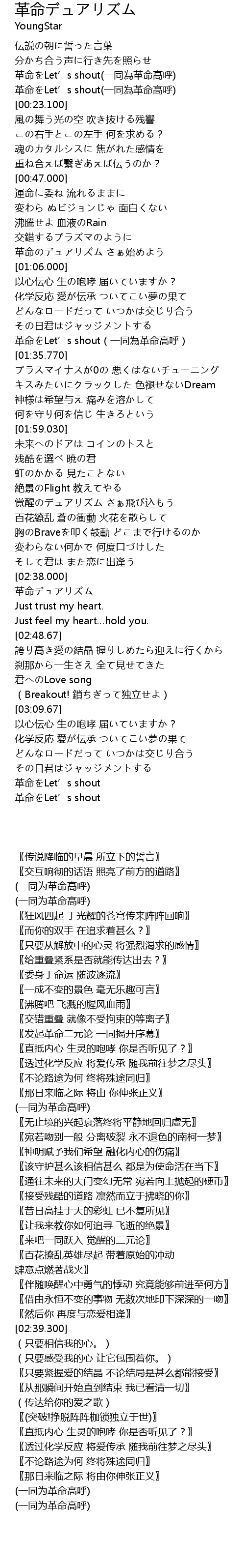 | [00:17.140] | 革命をLet’s shout(一同為革命高呼) |