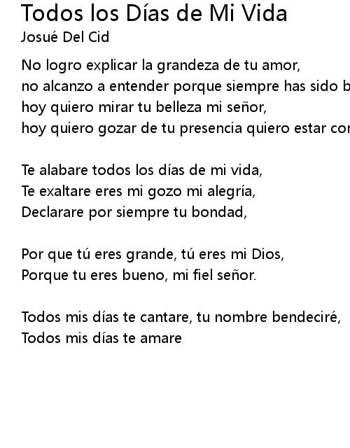 | Te alabare todos los di as de mi vida, | |