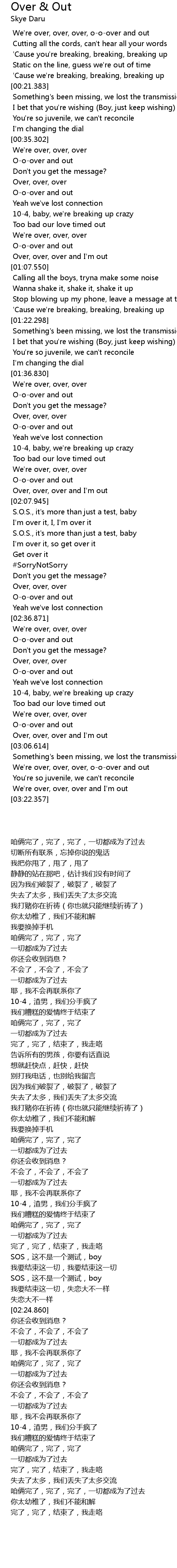 | [00:03.002] | We're over, over, over, o-o-over and out |