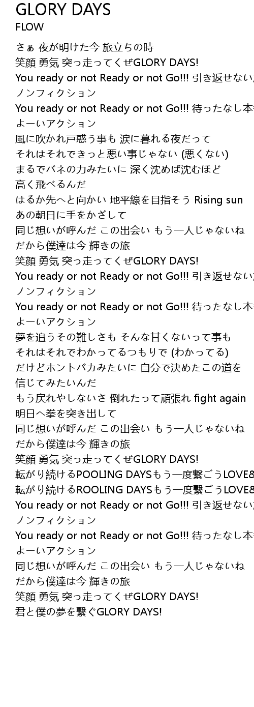 | 笑顔 勇気 突っ走ってくぜGLORY DAYS! | |